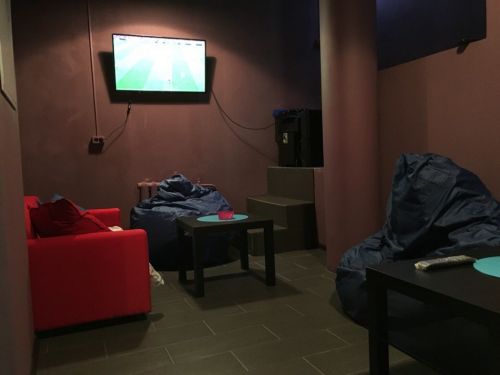 Отдельная комната с подиумом, ТВ и PS, где вы сможете расслабиться и почувствовать уединение) на 9 чел.